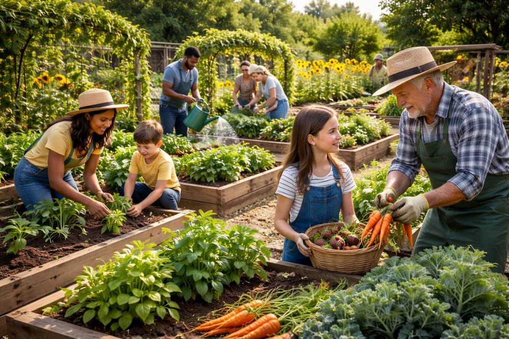 Kebun komunitas adalah ruang bersama di mana individu, keluarga, atau kelompok secara kolaboratif menanam sayuran, buah-buahan, dan rempah-rempah. Mereka menghidupkan lahan yang tidak terpakai, taman, dan bahkan bekas lokasi industri, menciptakan lanskap produktif di jantung kota. Selain memasok produk lokal yang segar, kebun-kebun ini mendukung keterlibatan masyarakat, interaksi budaya, dan ketahanan lingkungan.
