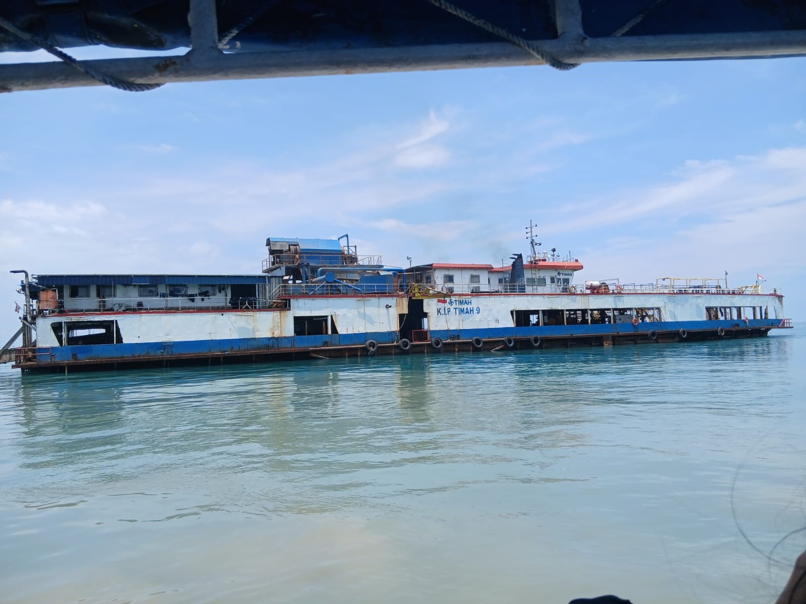 ada di kapal. Hasil olahan bijih timah kotor dari KIP 78 kemudian akan