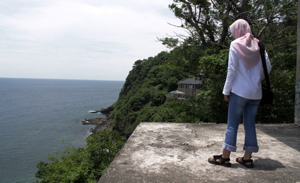 Perfect! Area favorit para pengunjung adalah tepi kolam renang kosong di lantai bawah dan bagian atap vila. Dari sini, kamu bisa berpose dengan latar belakang Pantai Setangi yang luas membentang. Kombinasi unik antara kolam renang yang terbengkalai dengan birunya laut dan langit senja itu epic banget.