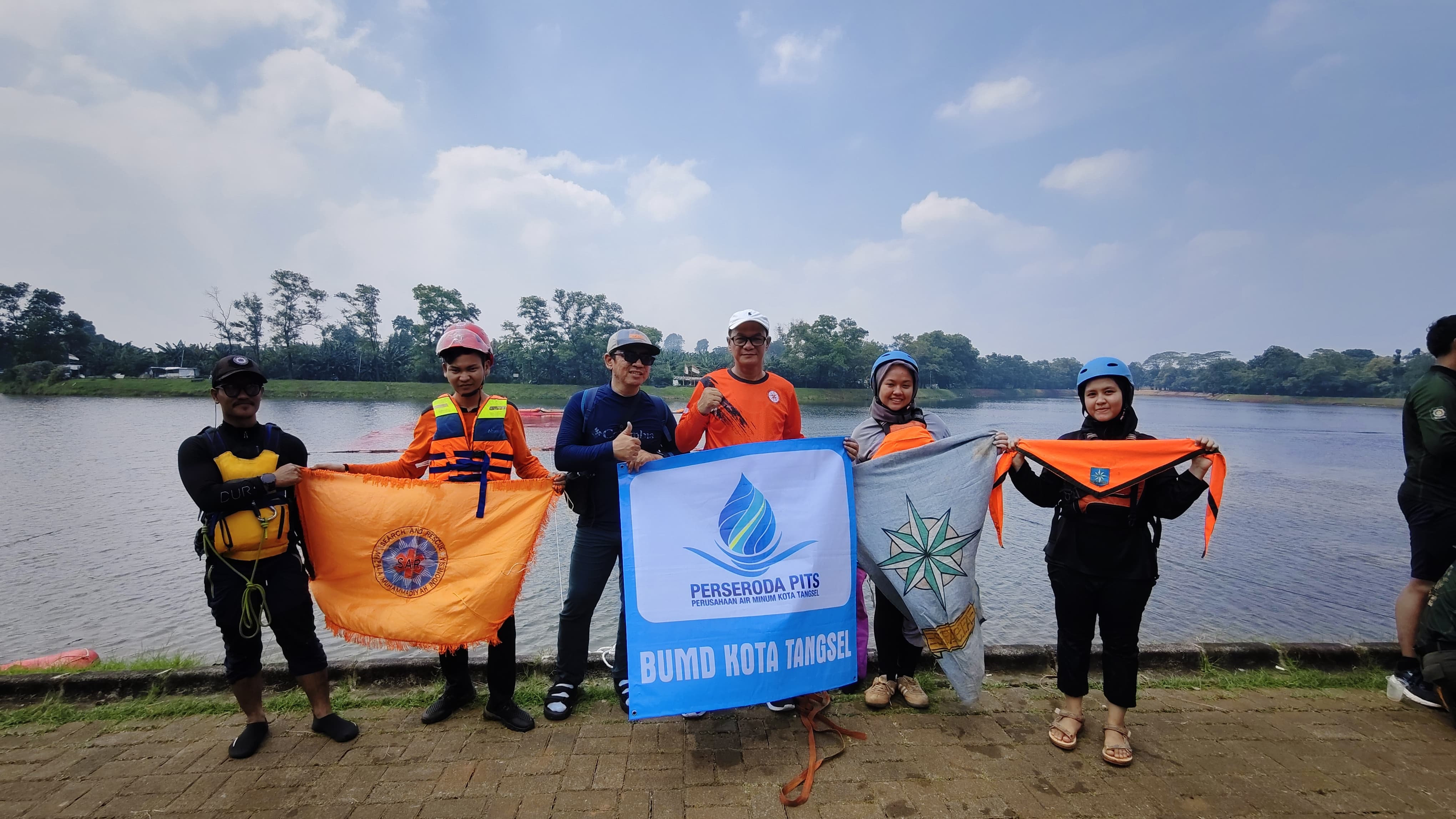 Stacia UMJ dan Forum Relawan Potensi Tangsel Bentangkan Merah Putih Raksasa di Danau Situ Gintung