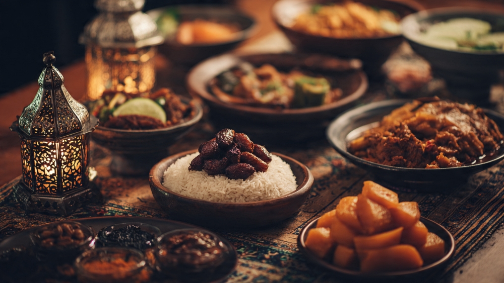 Contoh prompt: “Buat foto makanan ini menjadi lebih sinematik dengan pengaturan pencahayaan, depth of field, dan highlight yang profesional, ditambah dengan nuansa Idulfitri yang hangat dan nyaman.”