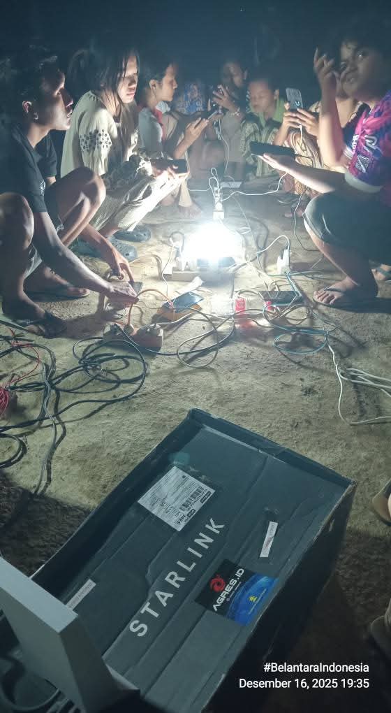 Selain genset, warga juga difasilitasi sarana internet berupa Starlink untuk warga gunakan berkomunikasi dan berbagi kabar dengan keluarga mereka di luar sana.